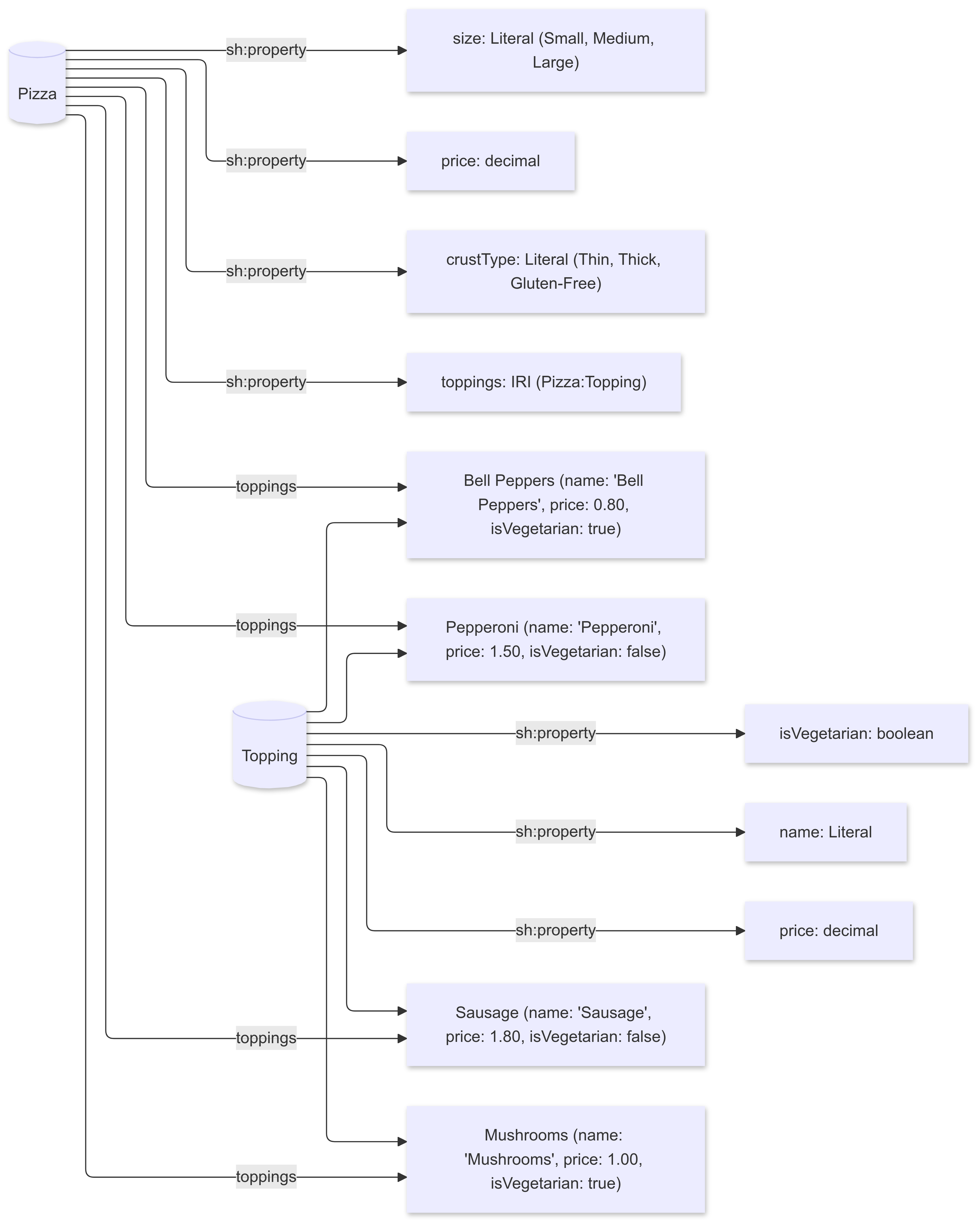 Topping -->|sh:property| IsVegetarian["isVegetarian: boolean"]