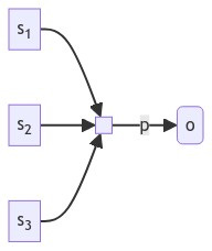 :s1, :s2, :s3 :p :o . # Note: DOES NOT WORKhowever, you can’t, primarily because this pattern wasn’t included in the Turtle parser (it likely breaks other things in Turtle as well). There are also no specialized markers for delineating a set in Turtle. Thus, at first glance, the idea of creating a true hypergraph goes out the window.