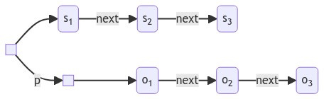 This is about the simplest implementation of a linked list that you can create in a graph. However, it’s complicated enough that Turtle does have a notation for it, of the form: