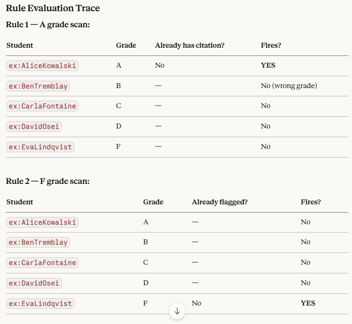 ex:goodCitation a rdf:Property . # Student → Citation (rule-generated)