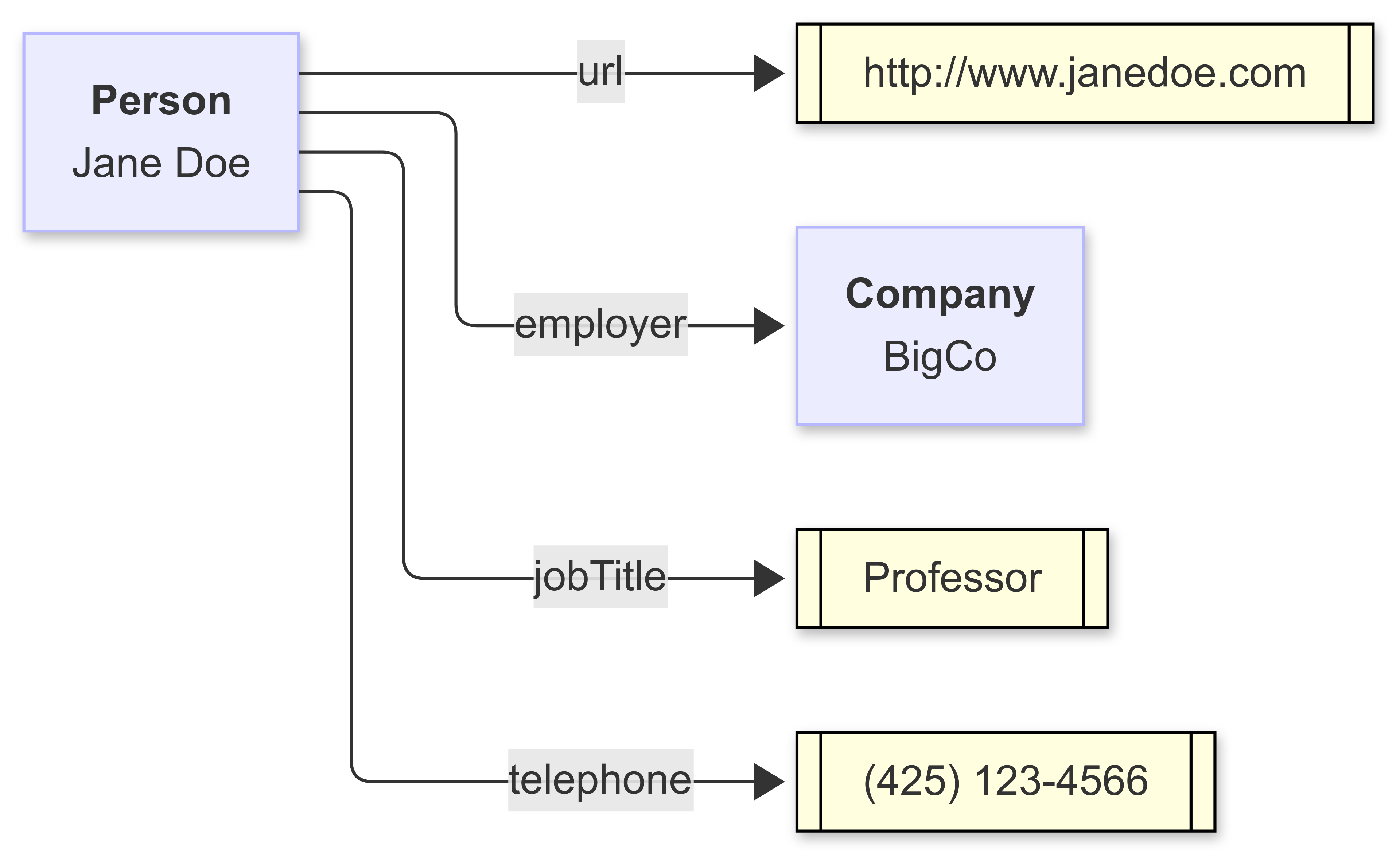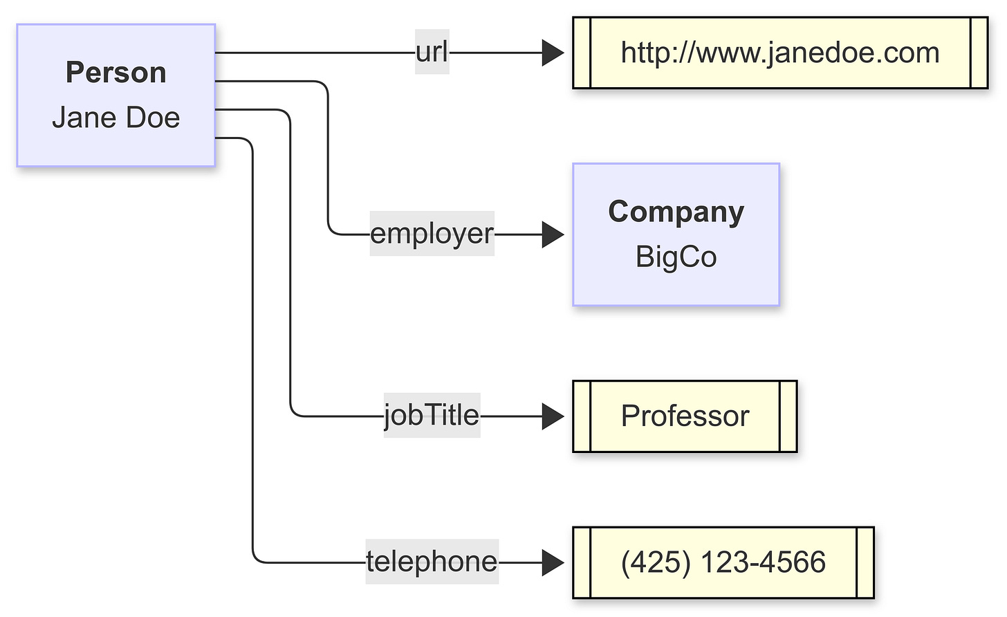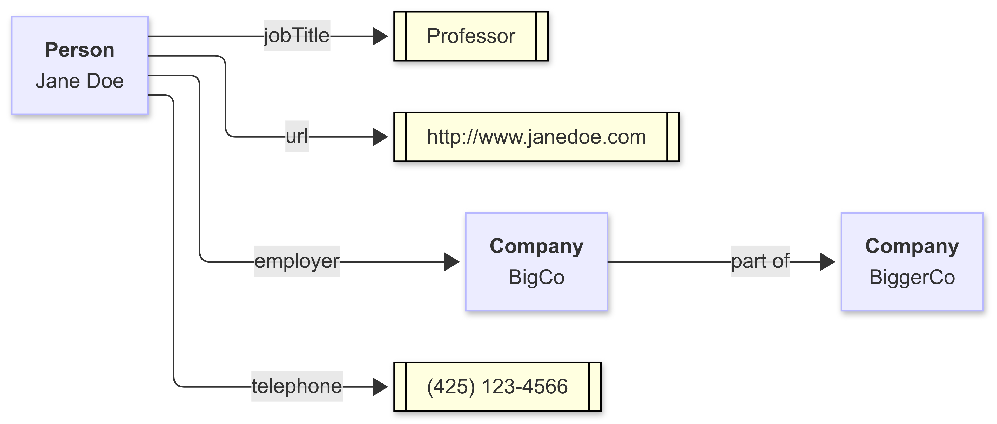 ex:janeDoe --> |employer| ex:BigCo